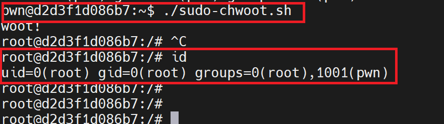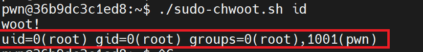 After running .sh as you can see, the user id and group id are now returned as root, and additional group memberships are also preserved.